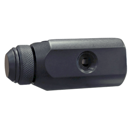 The CCM On/Off is a lightweight, compact air system adapter. It features a safety air relief hole that bleeds air off between the On/Off and tank and can mount an air fitting on the left side of the marker body. The On/Off is designed to work only with the CCM Micro Rail and Reverse Drop.